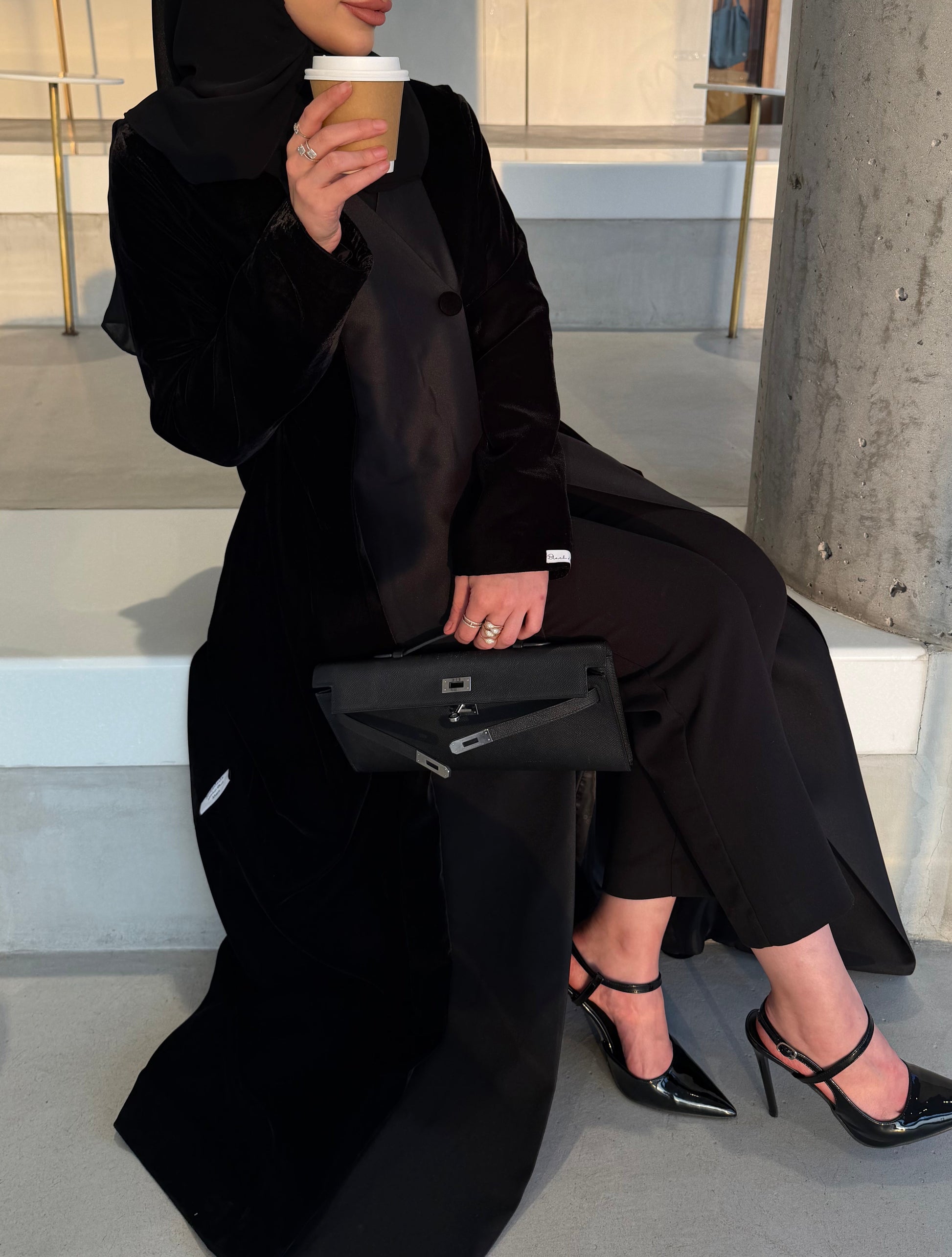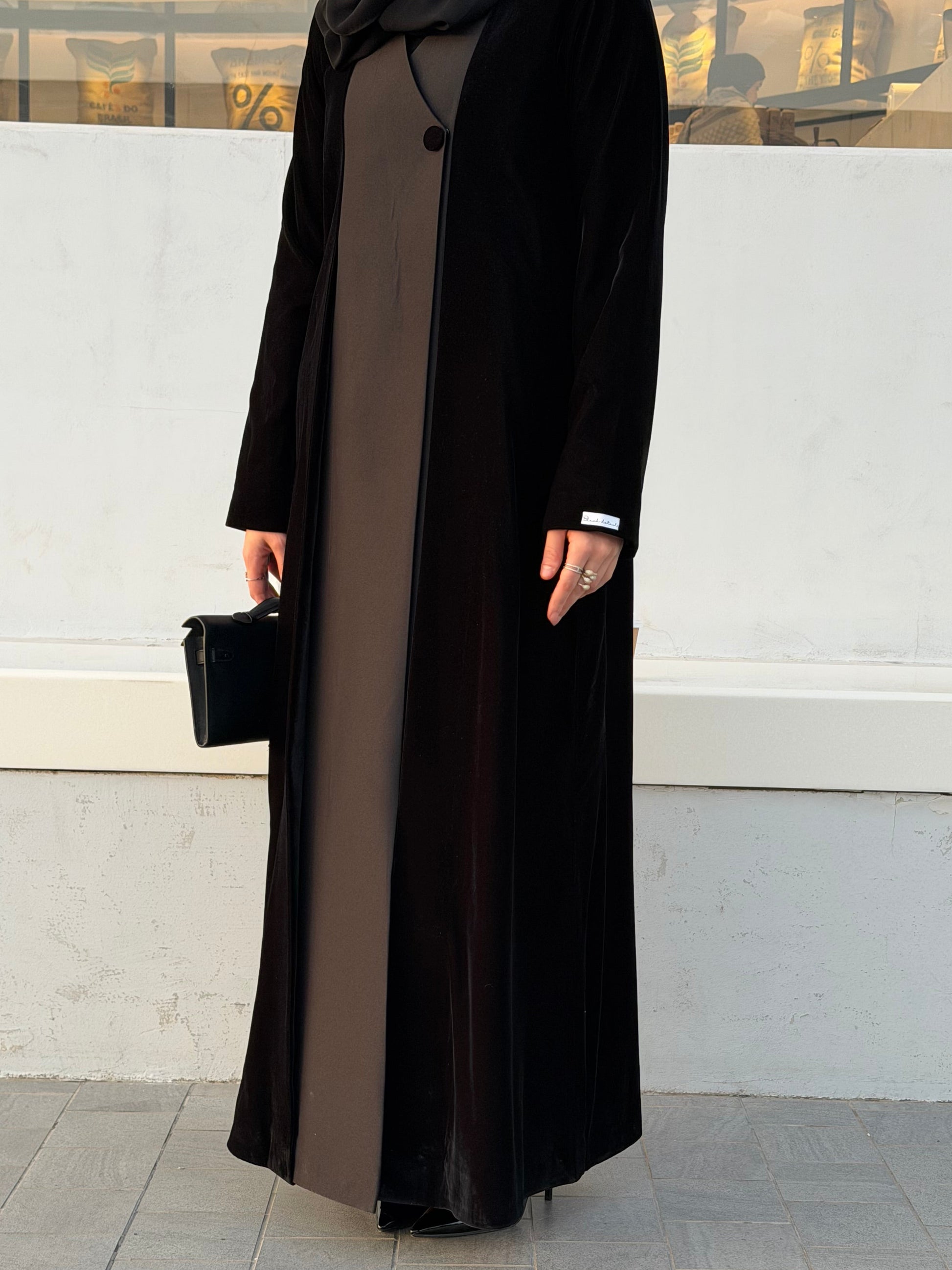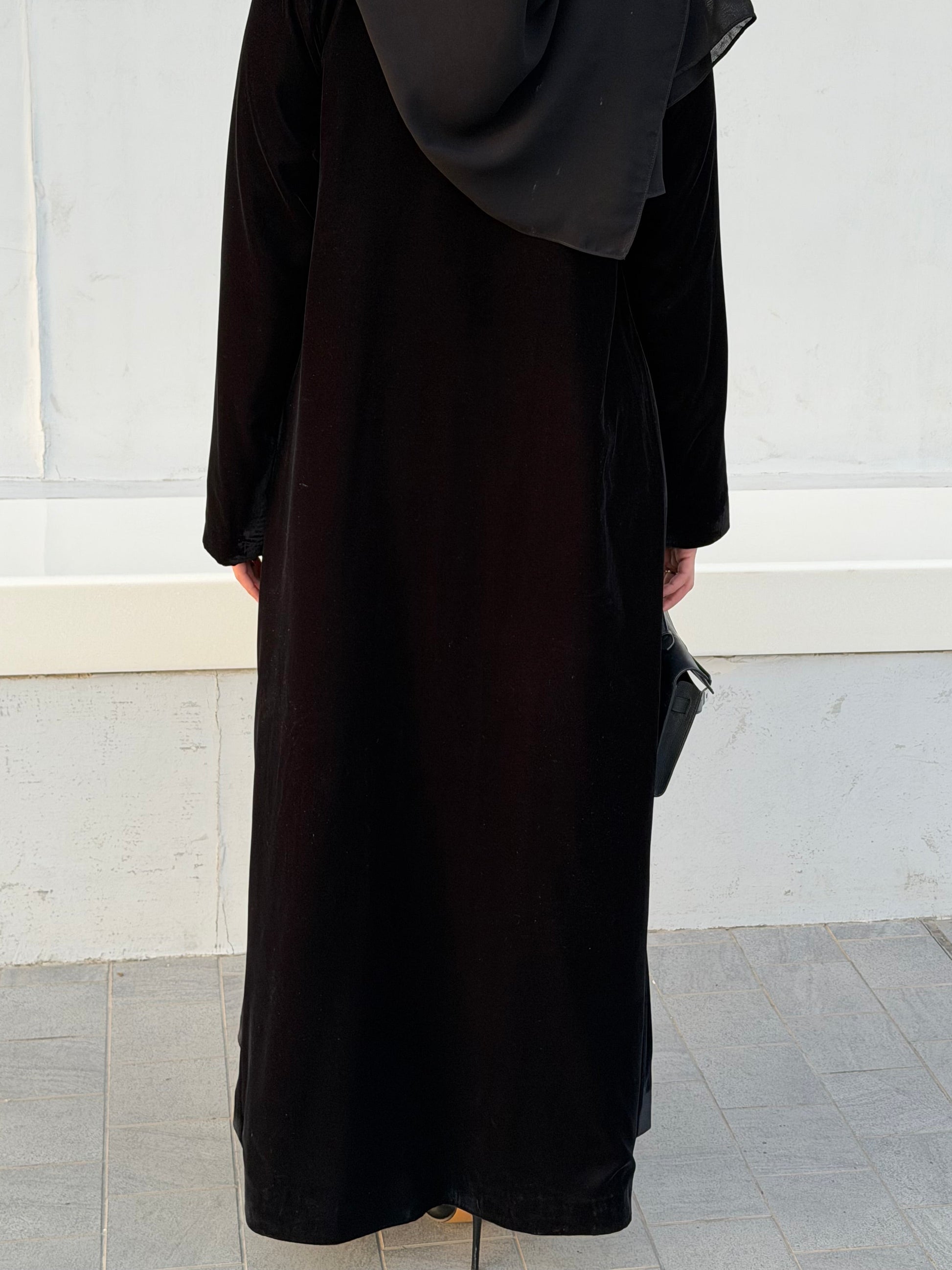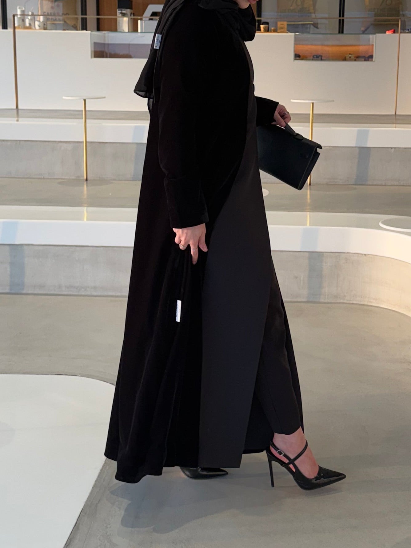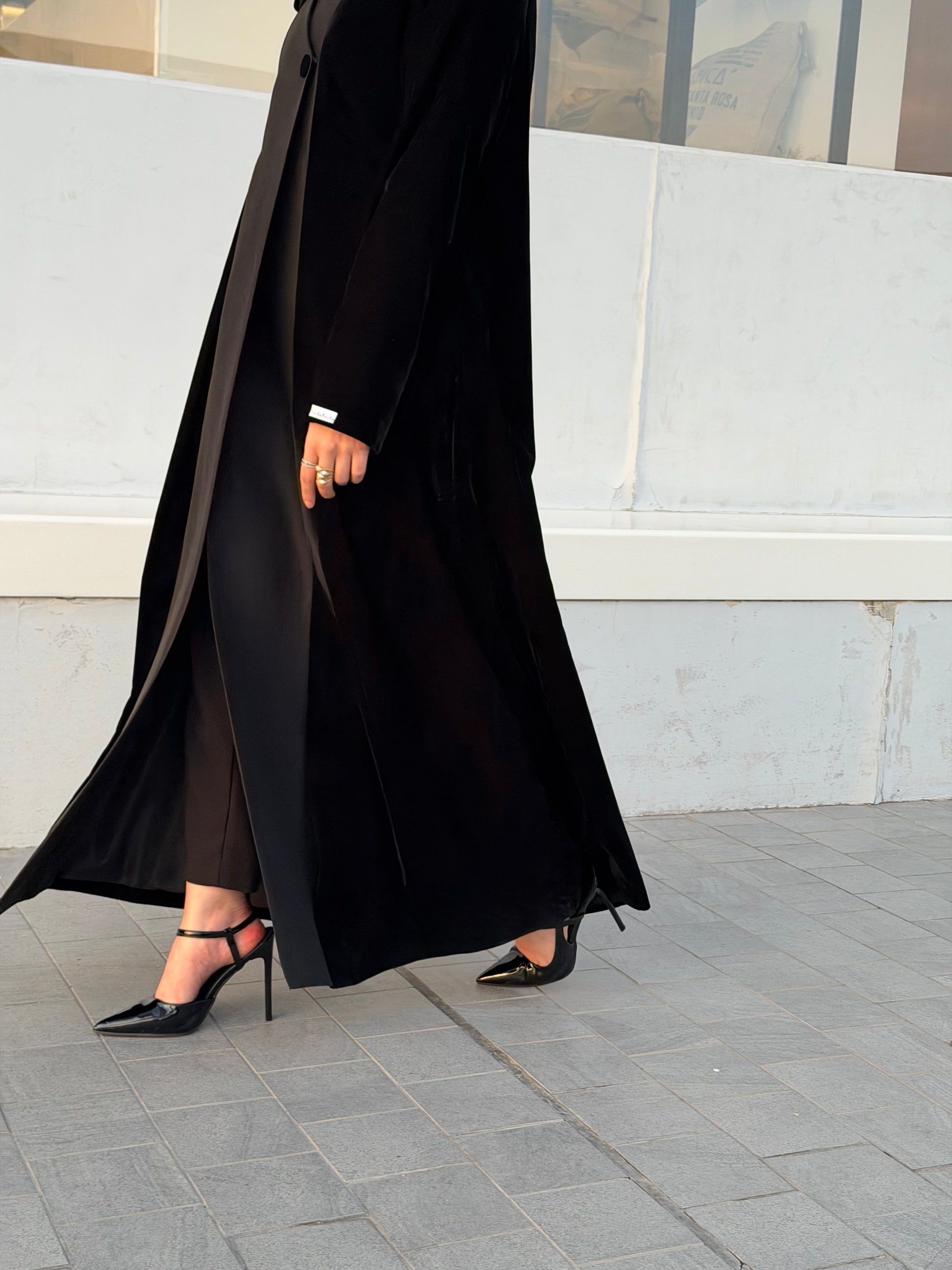 نوع الموديل: عبايه مبطنه بالكامل قصتها فت طايحه وتداخل الخامين عطاها فخامه أكثر